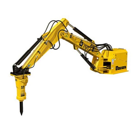 This V40H Light-Duty RK1 Line lightweight rock breaker boom system line is designed for use with mobile crushers. It can handle hammers up to 300 kg and delivers horizontal reach of up to 3.17 m and vertical reach of up to 1.15 m.